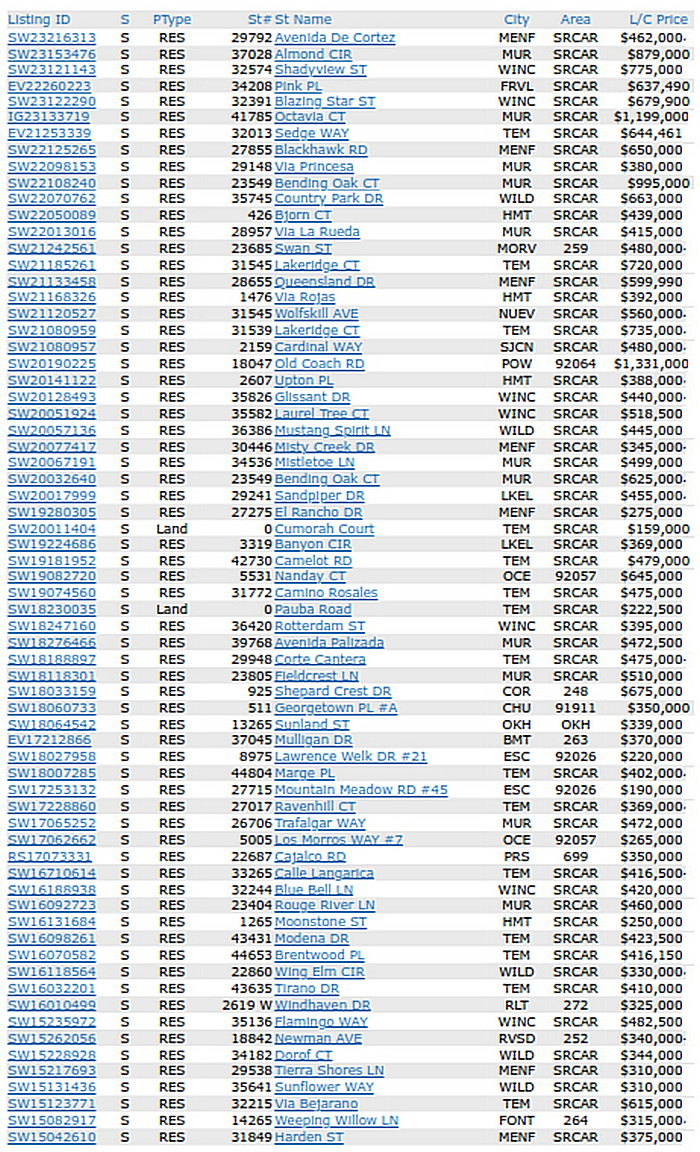 Perris, Wildomar, Lake Elsinore, and Canyon Lake.